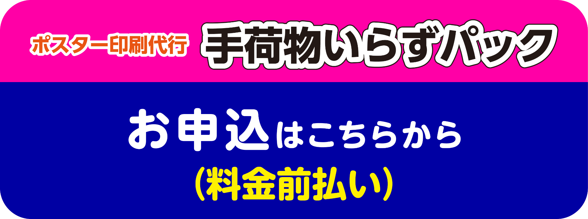 | *1 請求書および領収書は、電子データ(pdfファイル)での発行となります。 *2 ポスター掲示完了のメールは、お申込いただいた皆様全員への一斉送信となります。 *3 ポスターの返送をご希望の方は、「往復プラン」でお申し込みください。返送料は別途ご請求いたします。 ポスター印刷を複数枚お申し込み、同一の住所に返送をご希望の場合でも、システムの都合上、1件ずつのご返送となりますのでご了承ください(ポスター1枚ごとに返送料がかかります)。 |